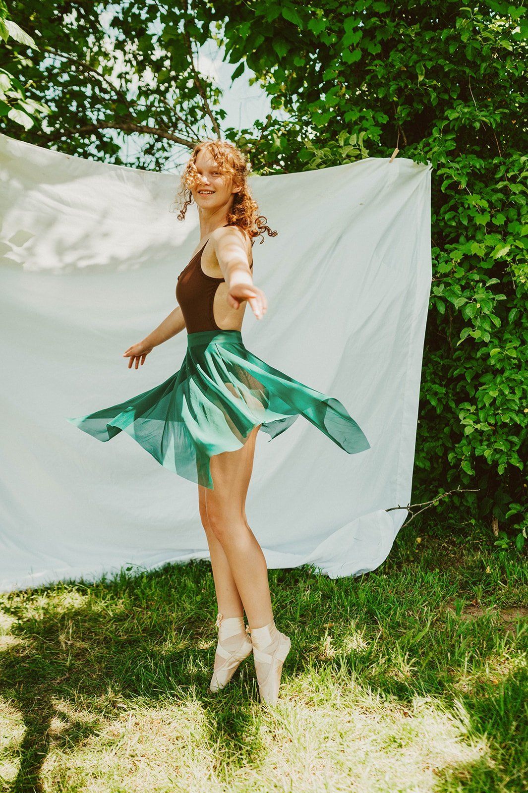 Every summer though, Meg came home to Granby, where she ran a summer dance program on her front porch, “Auntie Nutmeg’s Summer Dance Program.” It started with 11 girls on her front porch in 2000, and grew by word of mouth to over 100 boys and girls by the summer of 2003! With the help of a very supportive family and friends, that small summer program transformed into what is now Nutmeg’s Dance & Theatre Co.!